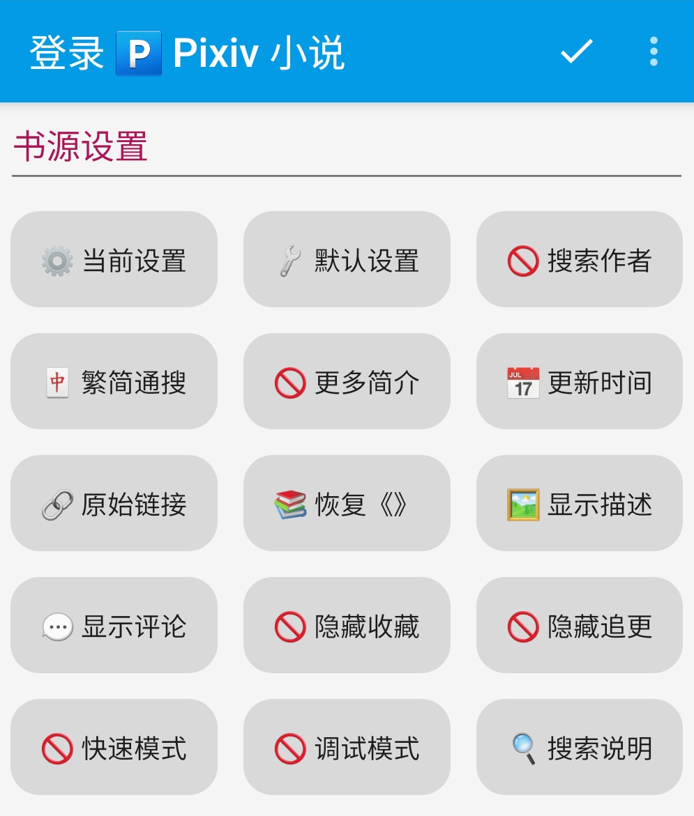 - 登录成功后,点击右上角的对勾返回,即可使用 Pixiv 书源查看小说了