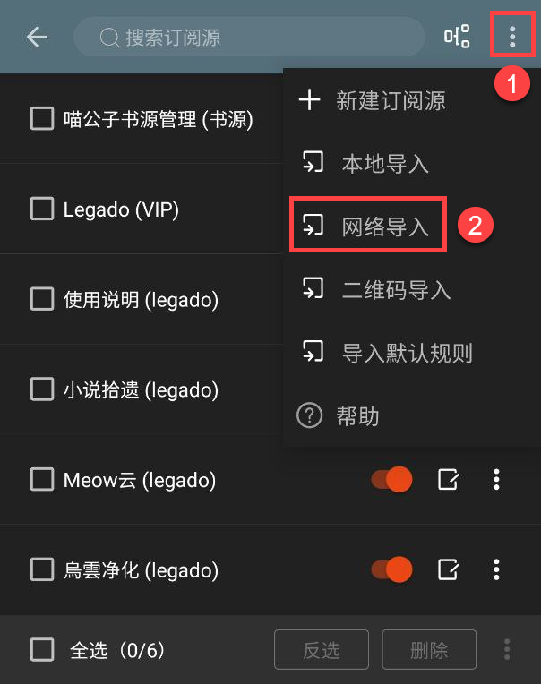 3.导入完成并启用书源/订阅源