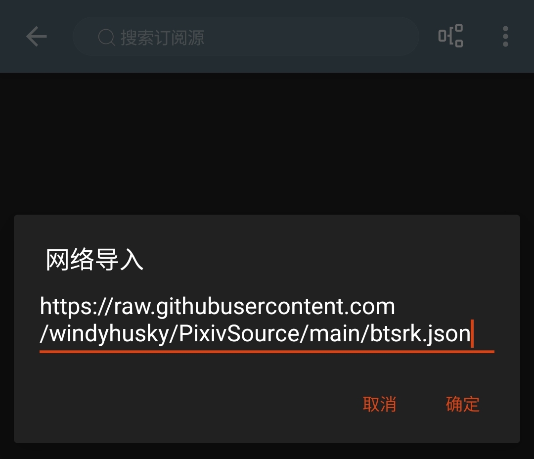 https://raw.githubusercontent.com/DowneyRem/PixivSource/main/btsrk.jsonhttps://raw.githubusercontent.com/DowneyRem/PixivSource/main/books.json2.使用阅读打开