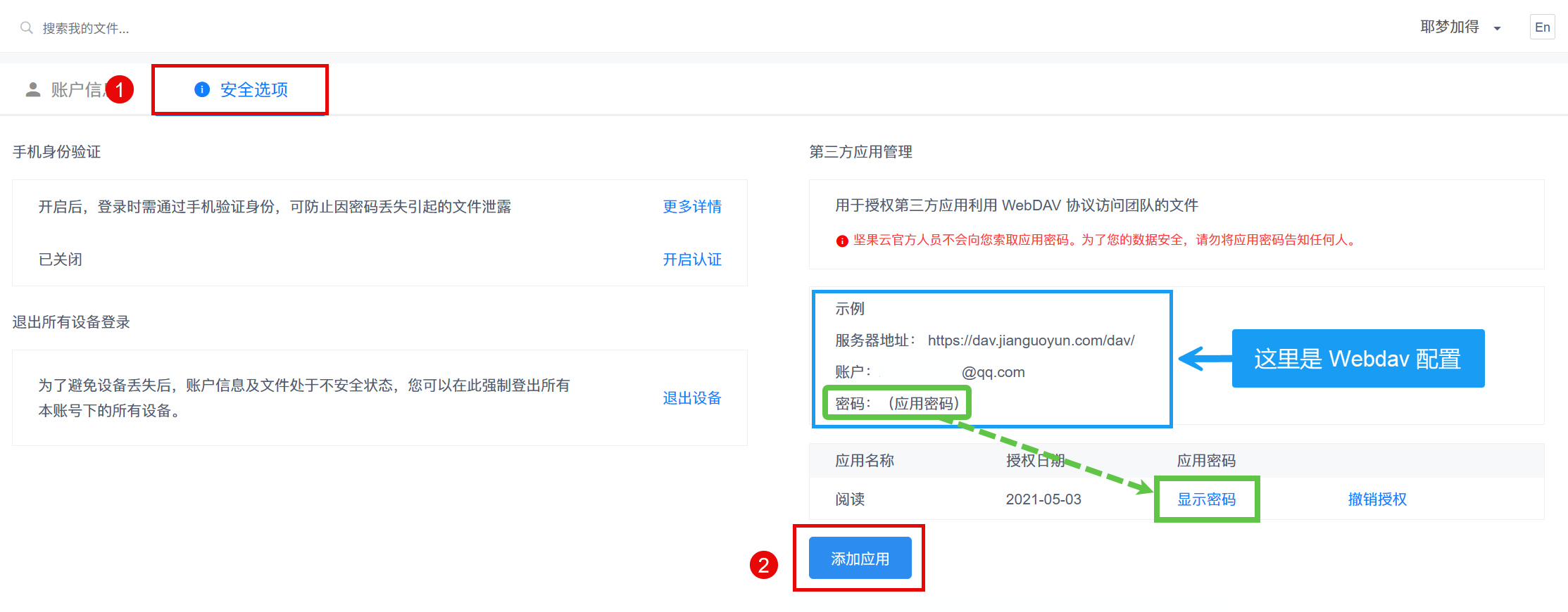 4. 你的 WebDav 账户信息